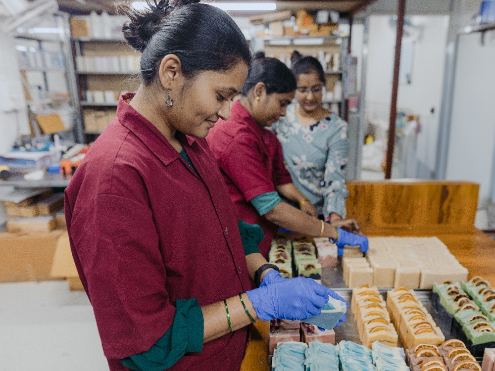 • Molding & curing – Bars are hand-poured into molds, then cured for 4–6 weeks to harden and become gentle on the skin.