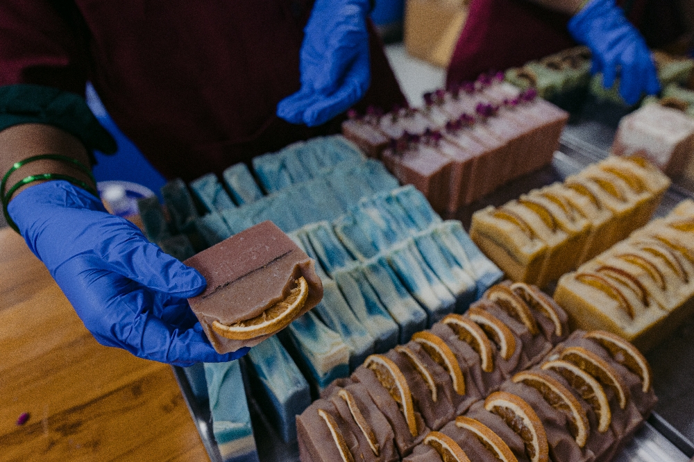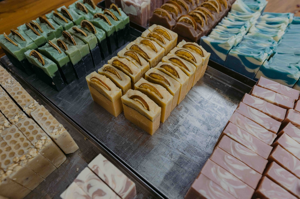 • Molding & curing – Bars are hand-poured into molds, then cured for 4–6 weeks to harden and become gentle on the skin.